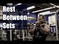 How Much Rest in Between Sets to Build Muscle. Many people make the mistake of resting too short in between sets, making their bodybuilding workout into more of an aerobic activity. Although aerobics can play a role in increasing the body's ability to recover more quickly, short rest periods in between sets of an exercise can keep you from accessing the fast twitch muscle fibres because the ATP and nervous systems will not have adequate time to recover. If you wish to gain in strength or access the fast twitch fibres of a muscle, it is imperative for you to replenish the ATP energy source by allowing the phosphocreatine system to replenish it. This takes approximately 2-3 minutes to do so. Now if you wish to take this further, the nervous system can sometimes take EVEN longer to reset, meaning that if you lift too quickly, you may not be able to manifest the amount of electrical effort (coordination) to access the fast twitch fibres in full capacity, which is why some powerlifters will rest as long as 5 minutes in between sets. It's important to note that as a bodybuilder, you are trying to access all of the muscle fibres, so switching up the rest periods to access different muscle fibres can be an effective way to do so. Just know which part of your muscles your hitting when you do so.